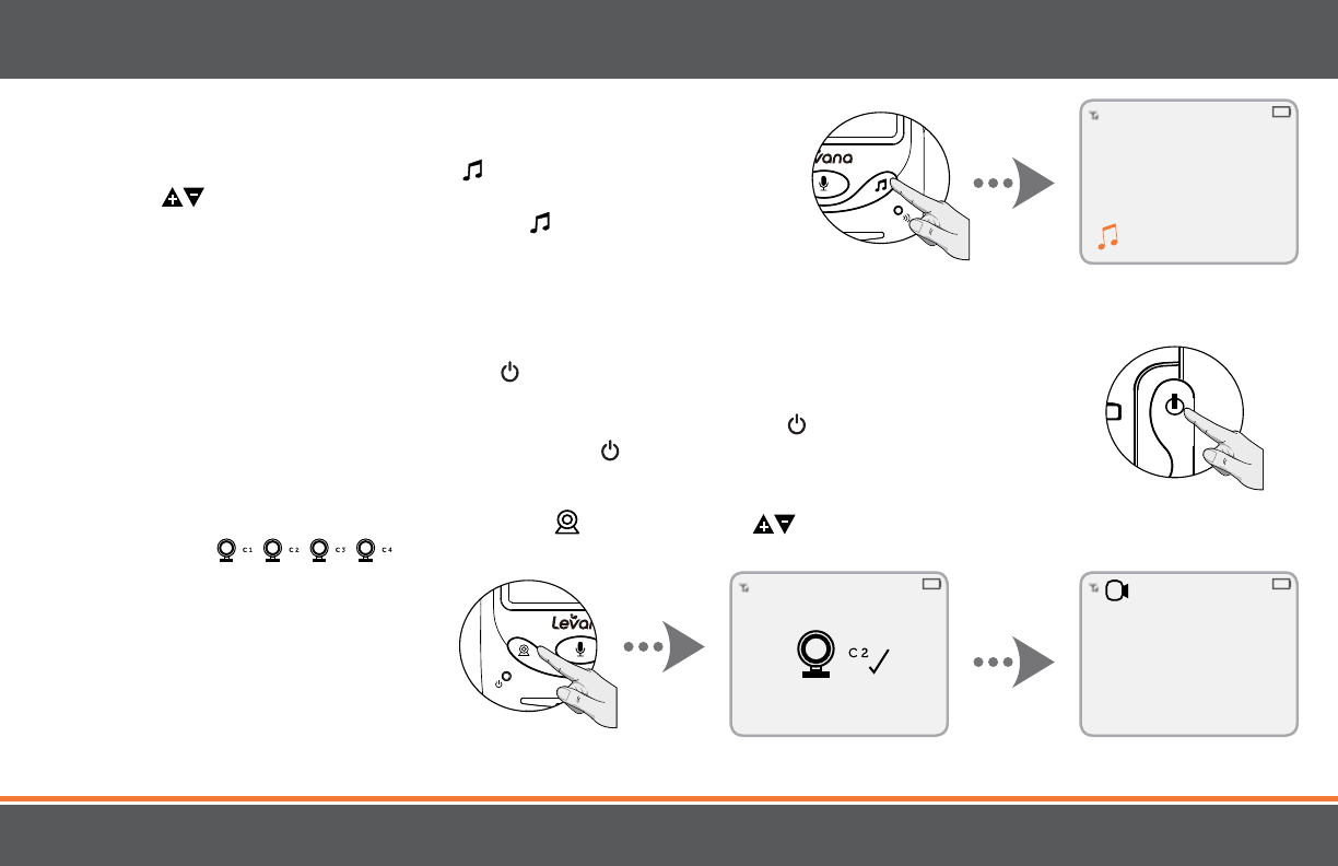 2. Use the VOLUME arrows (side) to scroll through the 5 lullabies.