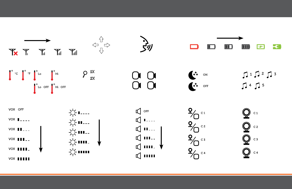 No reception • Camera and monitor may not be properly paired; follow PAIRING instructions