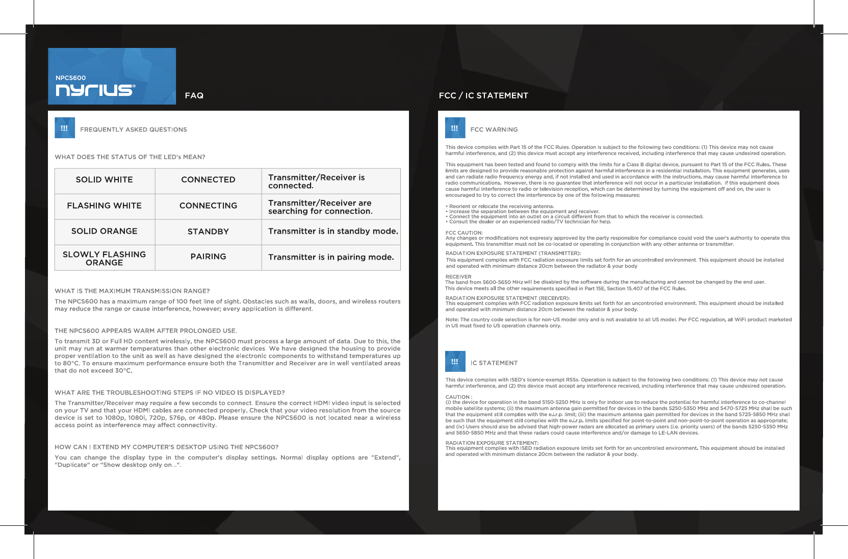 Circus World Displays NPCS600 Nyrius Geronimo Wireless HD Transmitter User Manual CWD NPCS600 QSG A IB04352299 A 160704