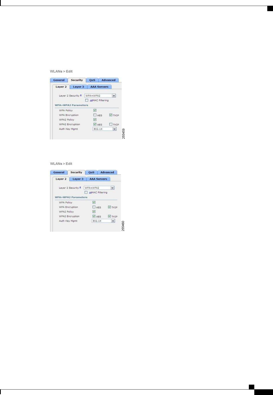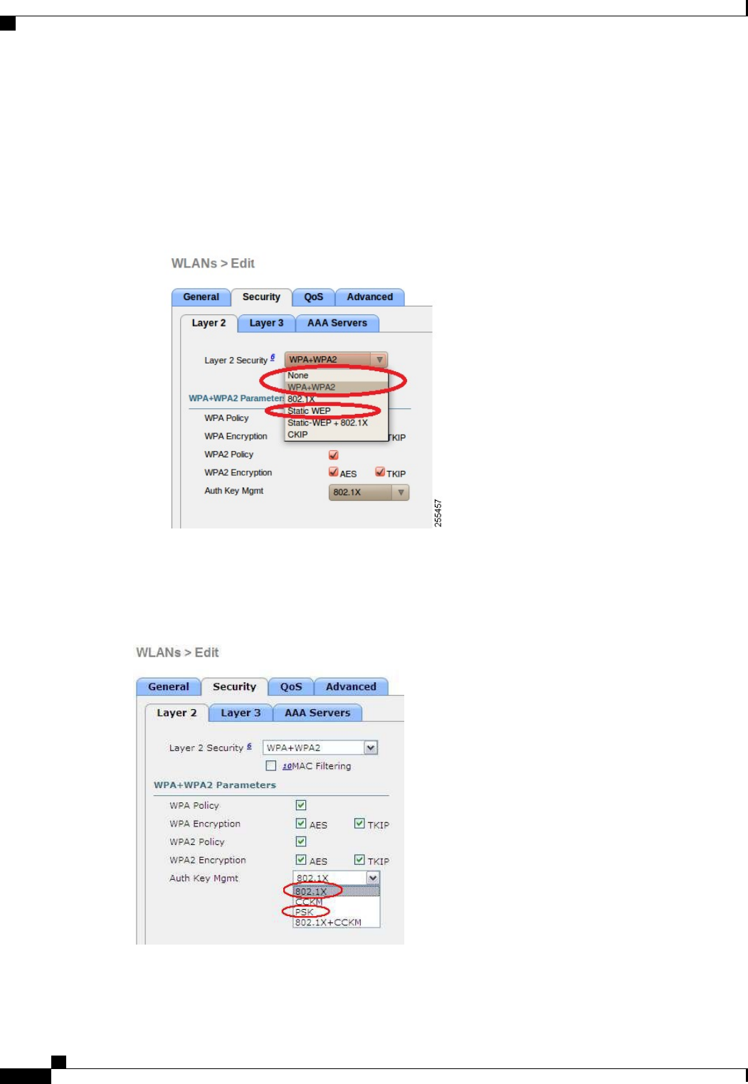 Step 3 Choose the Security and Layer 2 tabs to open the WLANs > Edit (Security > Layer 2) page.