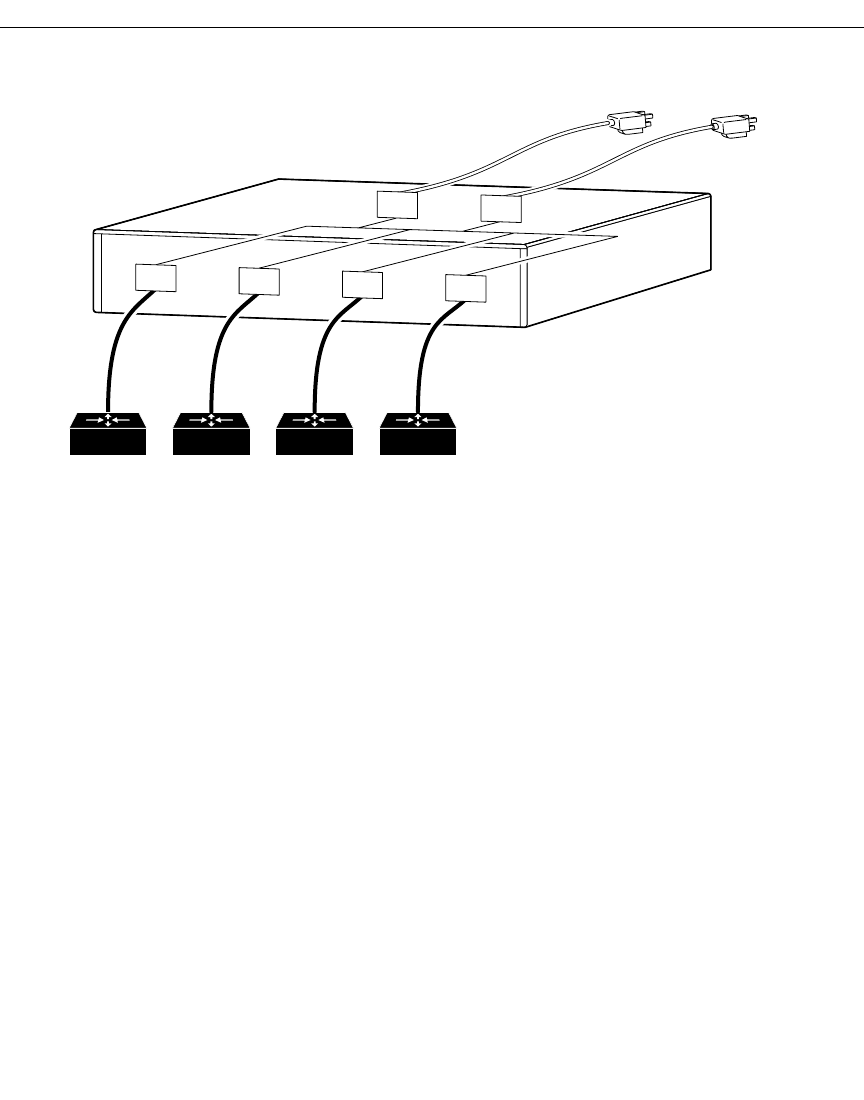 routers. You can use a two-to-one cable to connect up to two external devices to the four