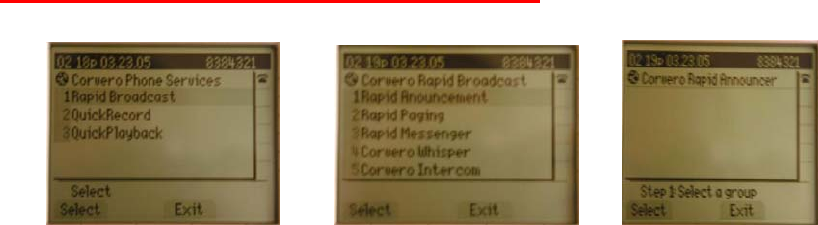 button on your phone. Select Rapid Broadcast or Option 1.