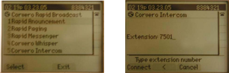 or select Option 5. (Corvero Intercom) Type in the extension