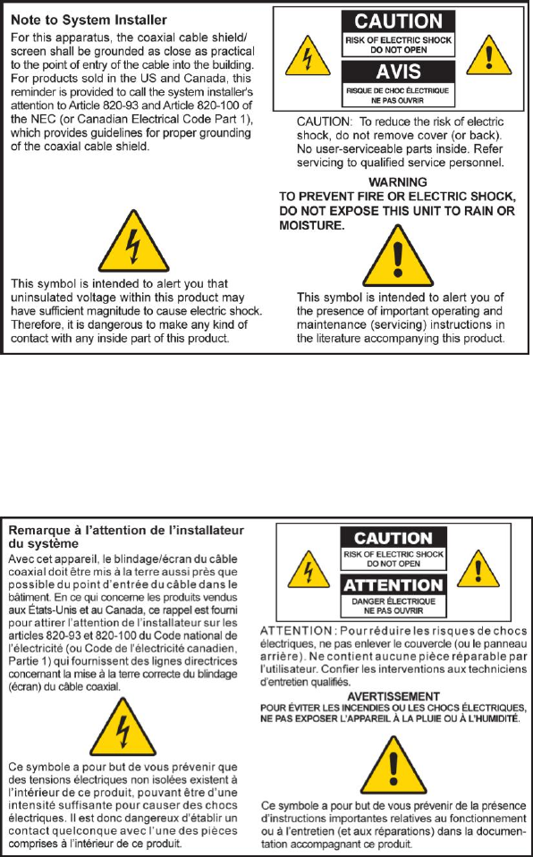 exclusivement au personnel technique qualifié. Pour réduire les risques de chocs électriques, n’effectuer