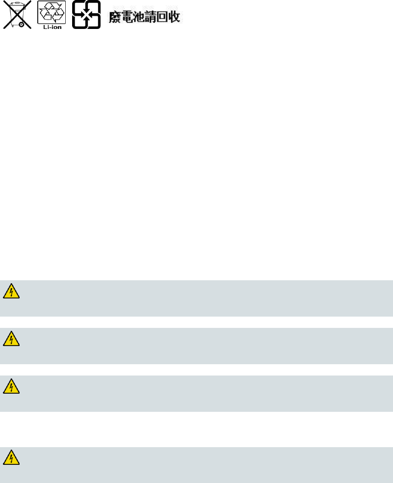 high temperature or immerse in water or other liquids. Dispose of the battery
