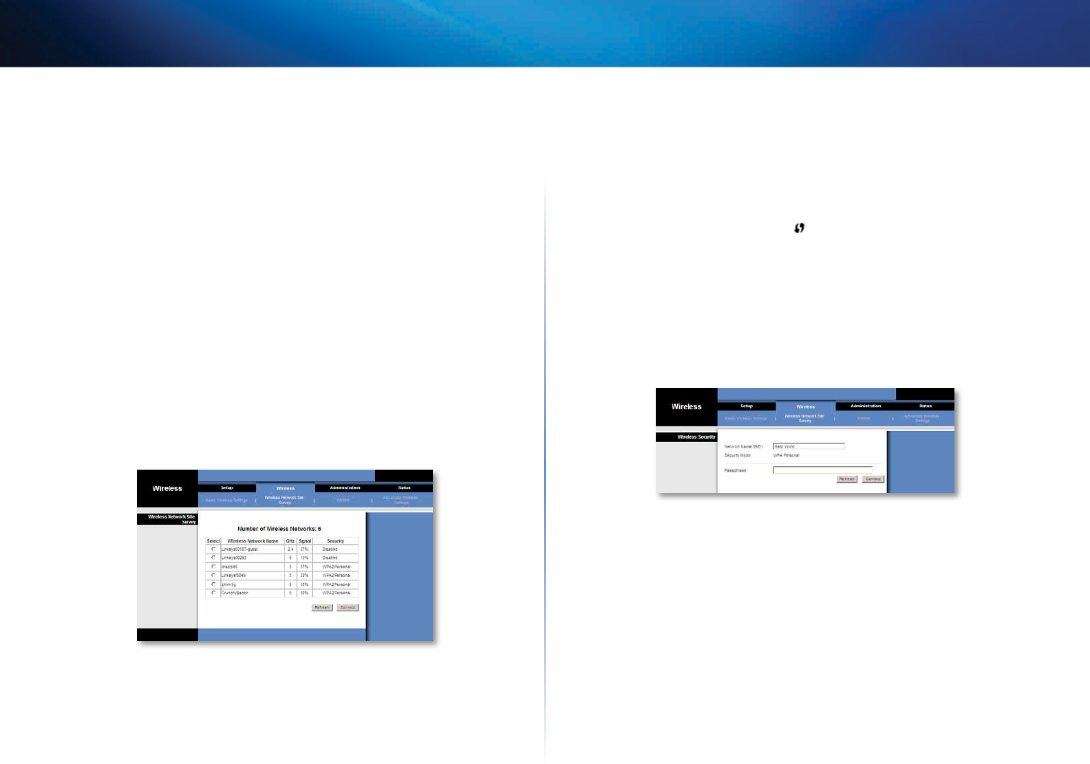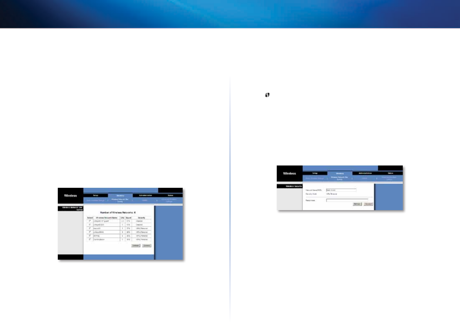 - Wireless (Bezdrátové připojení) > Wireless Network Site Survey (Přehled bezdrátových sítí)