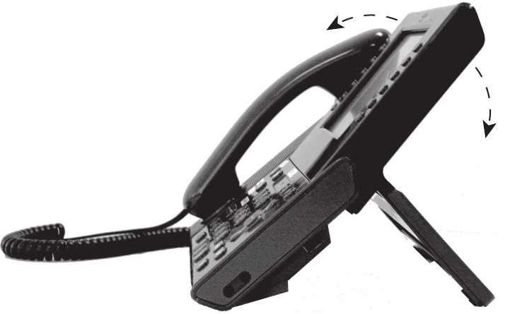 Hold the handset and cradle with your left hand, hold the right side of the bezel (to the right of the
