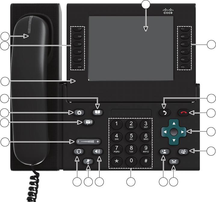 Your phone provides quick access to your phone lines, features, and call sessions: