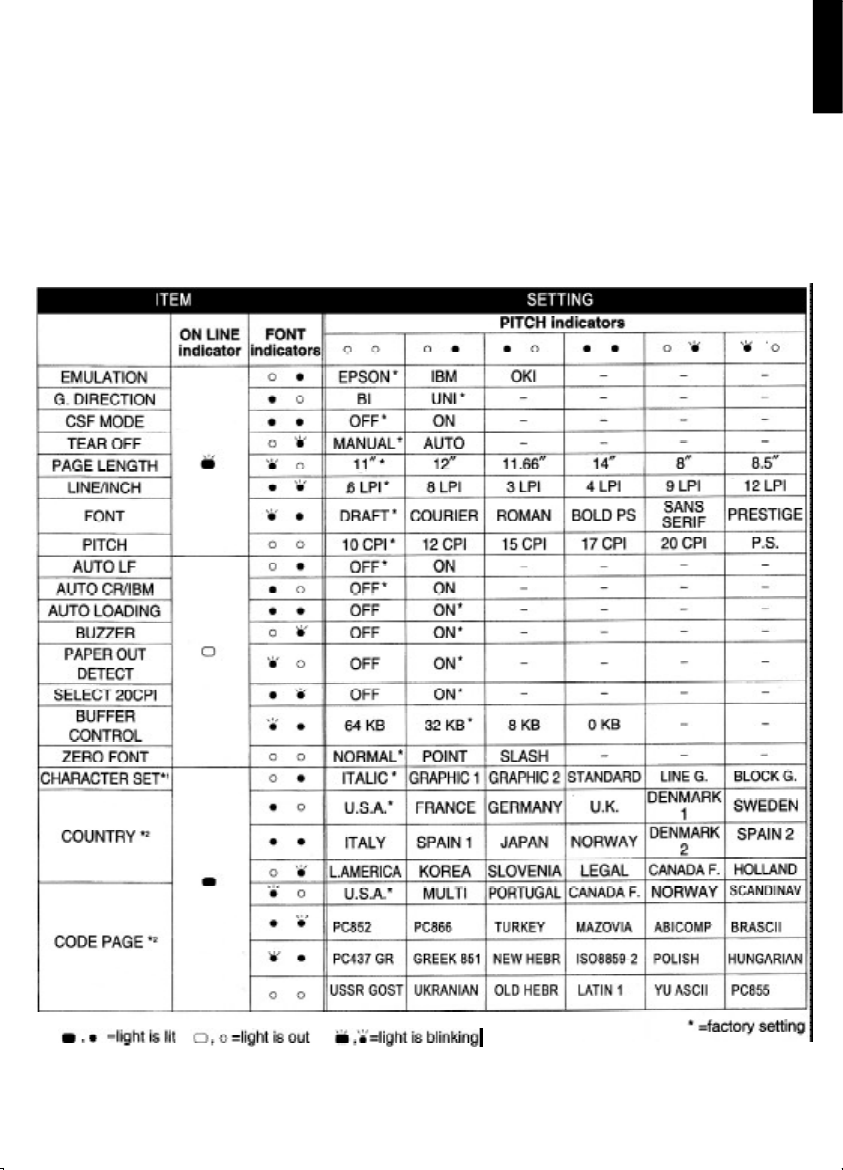 Character sets: EPSON mode ONE Italic, 18 characters set tables, 17