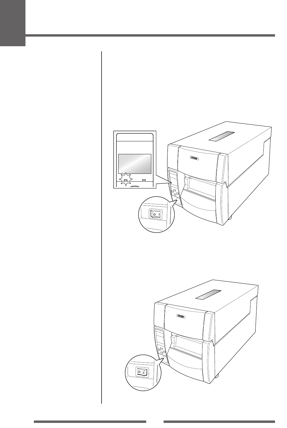the printer. The power switch is located in a recessed panel at the front of the printer so it can