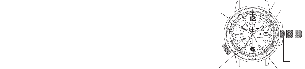 stopping the watch. It can be used as a dual time watch by setting the 24 hour