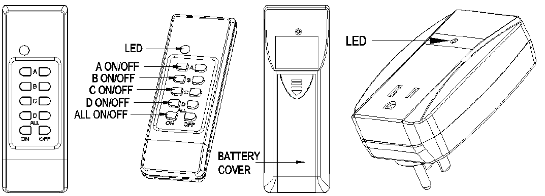 3. Every transmitter can control up to 4 channels (1ON,1 OFF,2ON,2OFF…etc). each channel can control