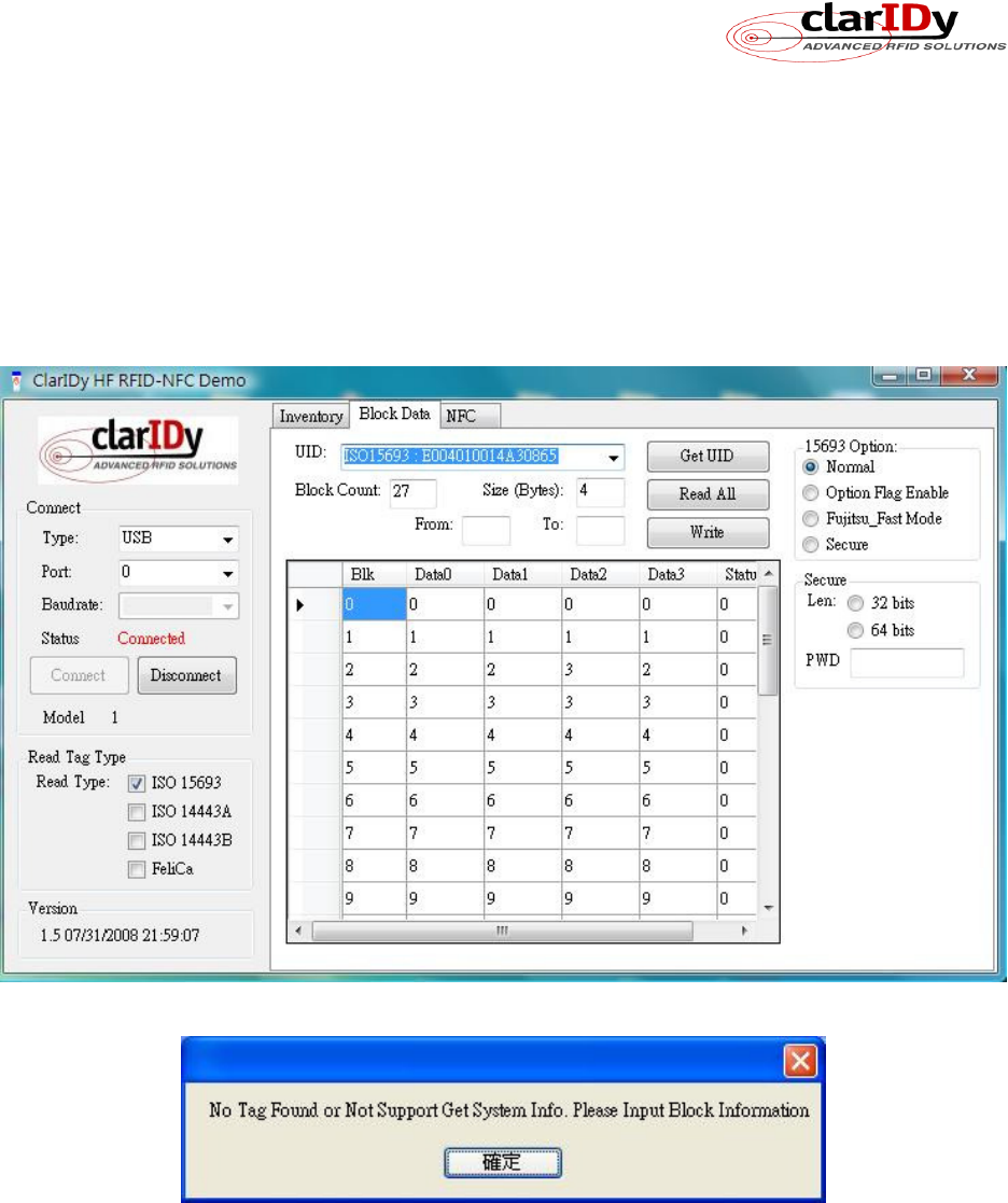 “Block Data” is used to read/write ISO15693 Tag’s block data.