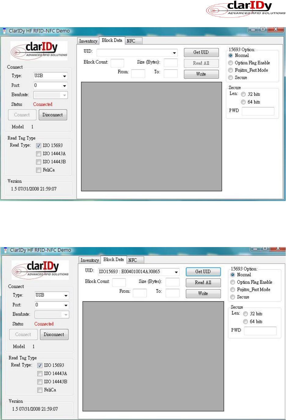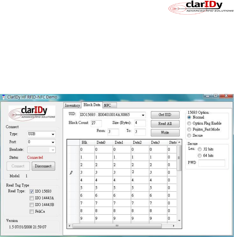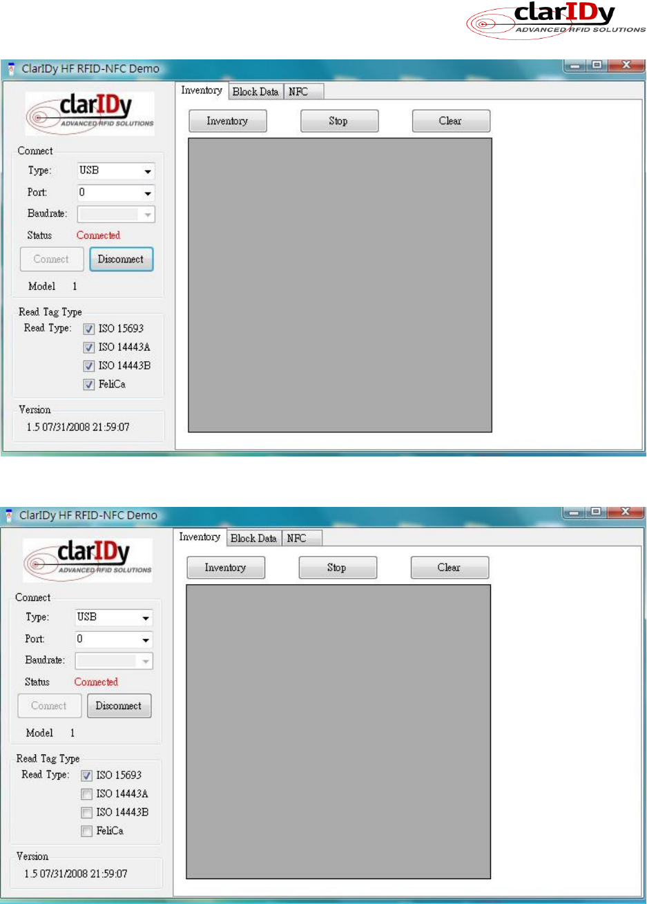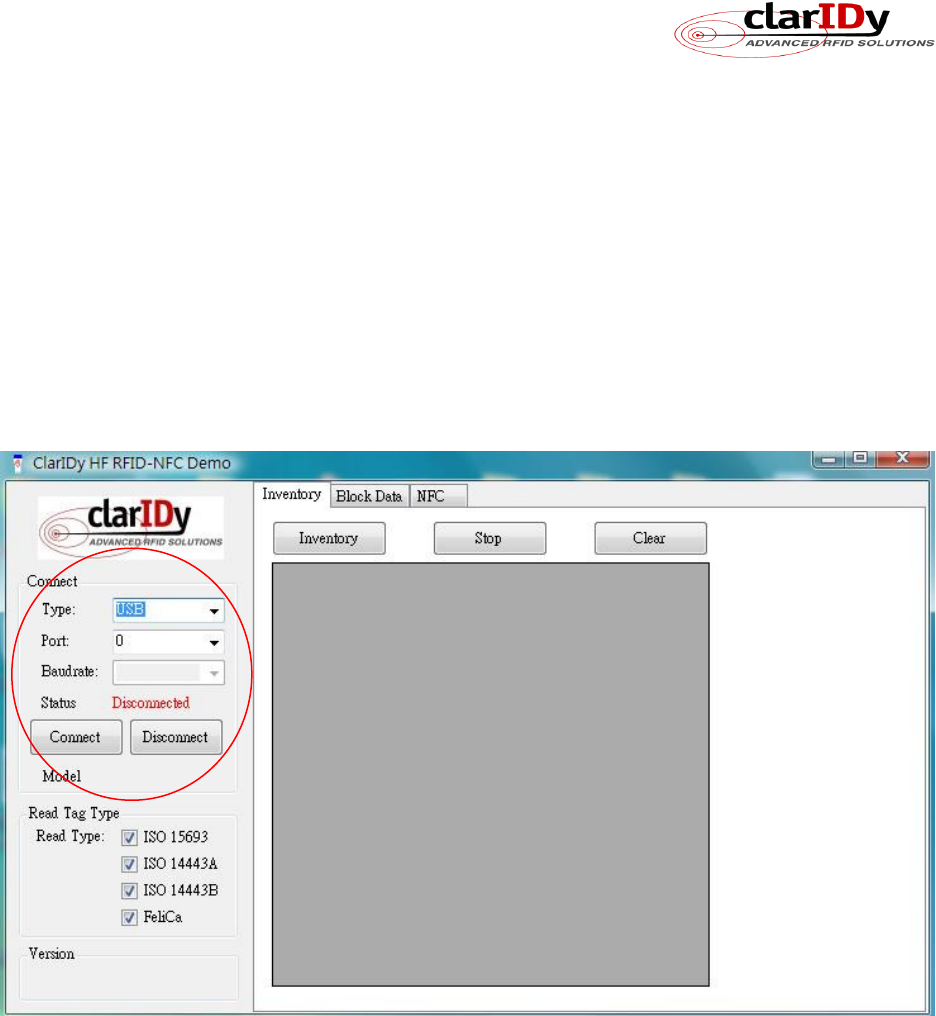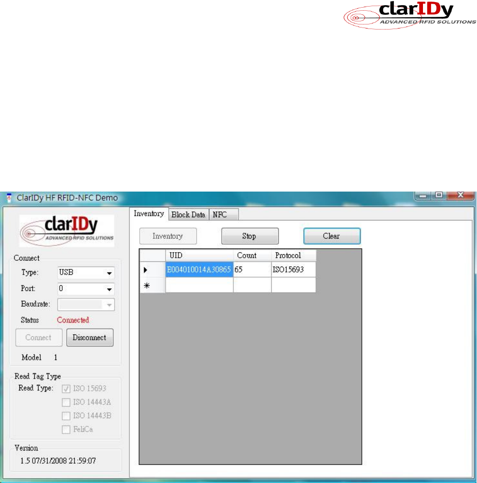 functions. User can use this application to control the ClarIDy HF RFID Reader to communicate