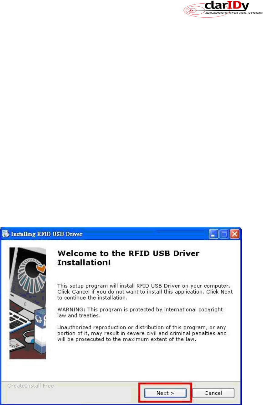 1. Click “Next” from the “Installing RFID USB Driver” dialog, as figure 1.