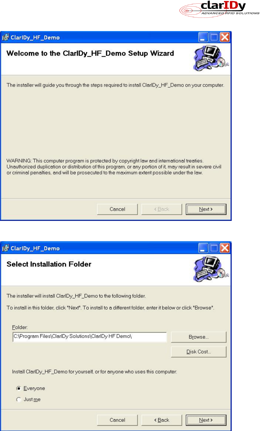 1. Click “Next” from the “ClarIDy HF Setup” dialog, as figure 5.