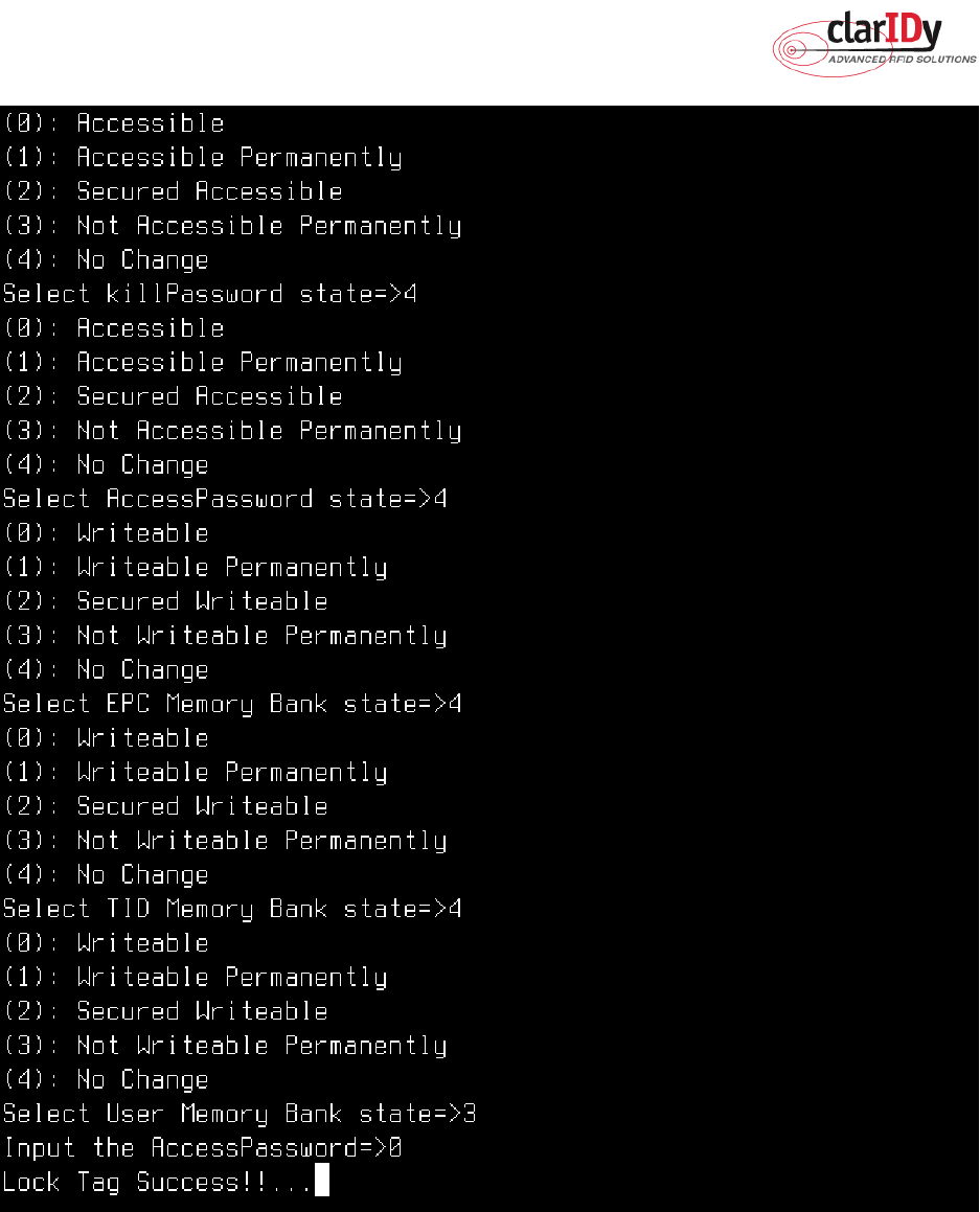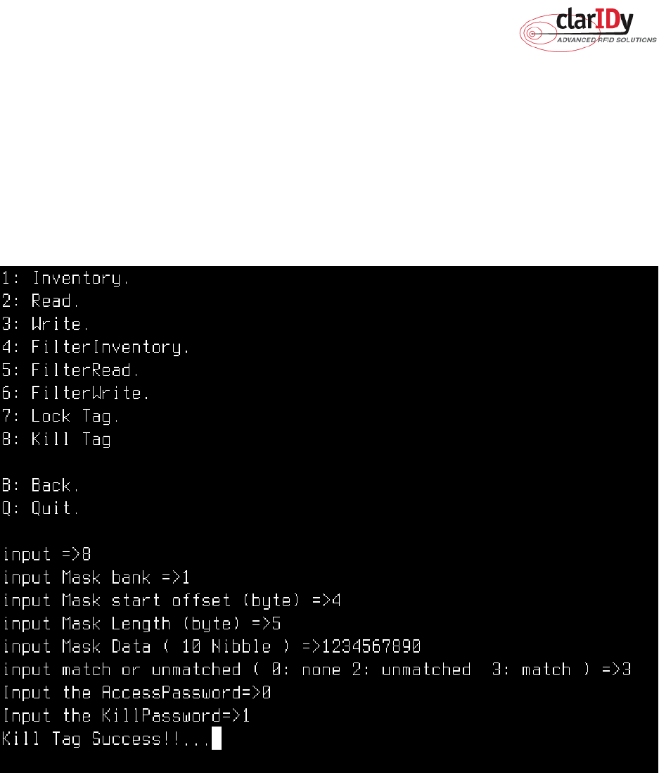 Read/Write” and “Lock/Kill” functions. Users can use those applications to control the ClarIDy