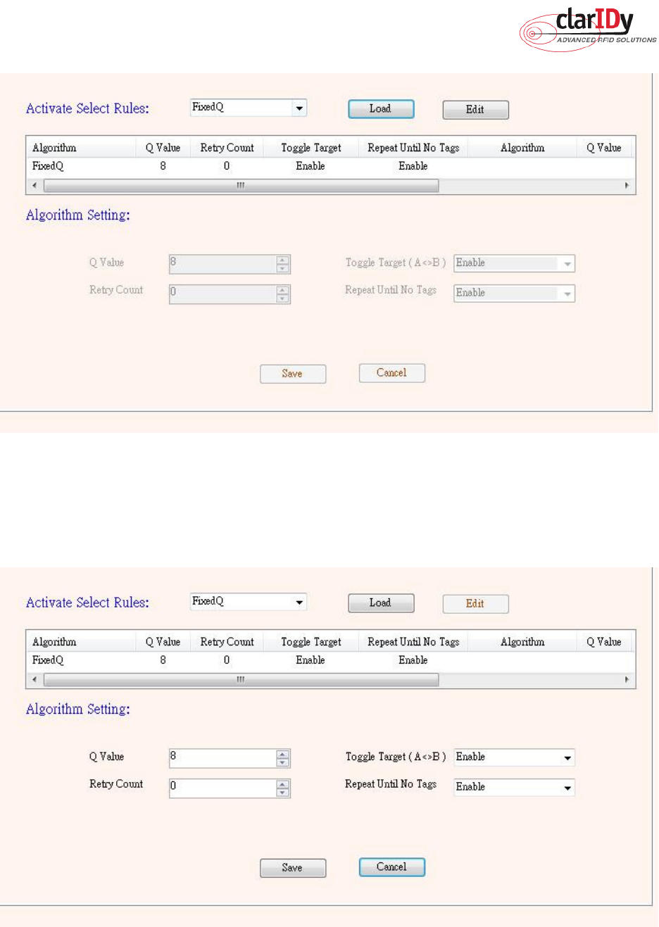 ClarIDy UHF RFID Reader. The demo program provides “Setting”, “Algorithm”, “Inventory”,