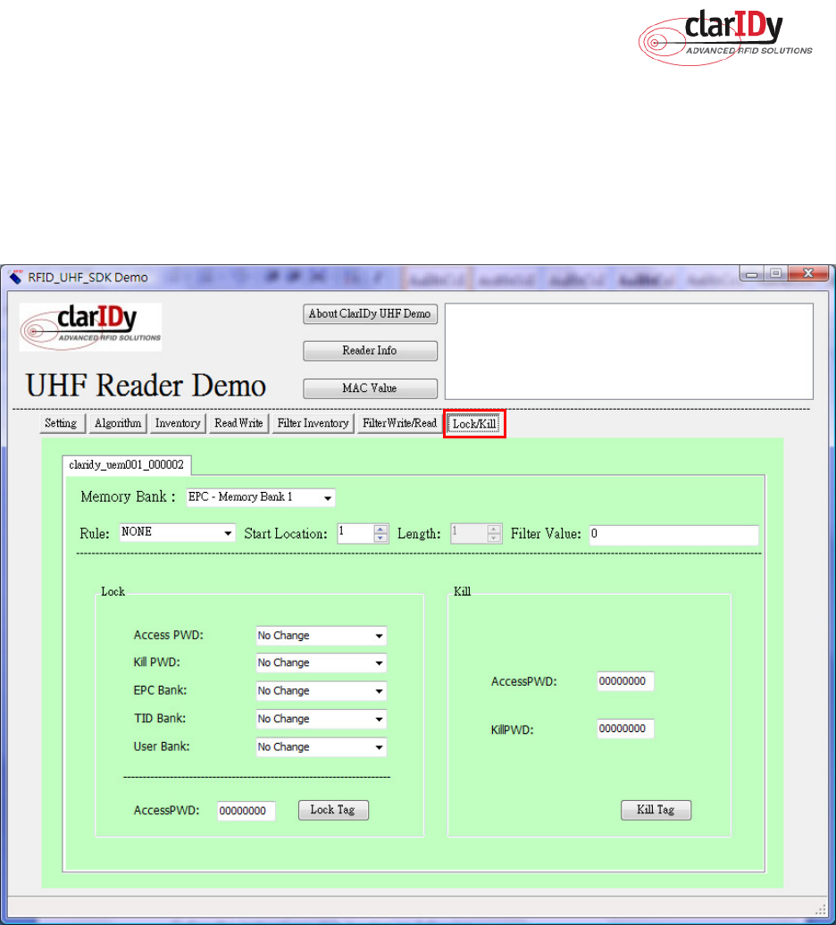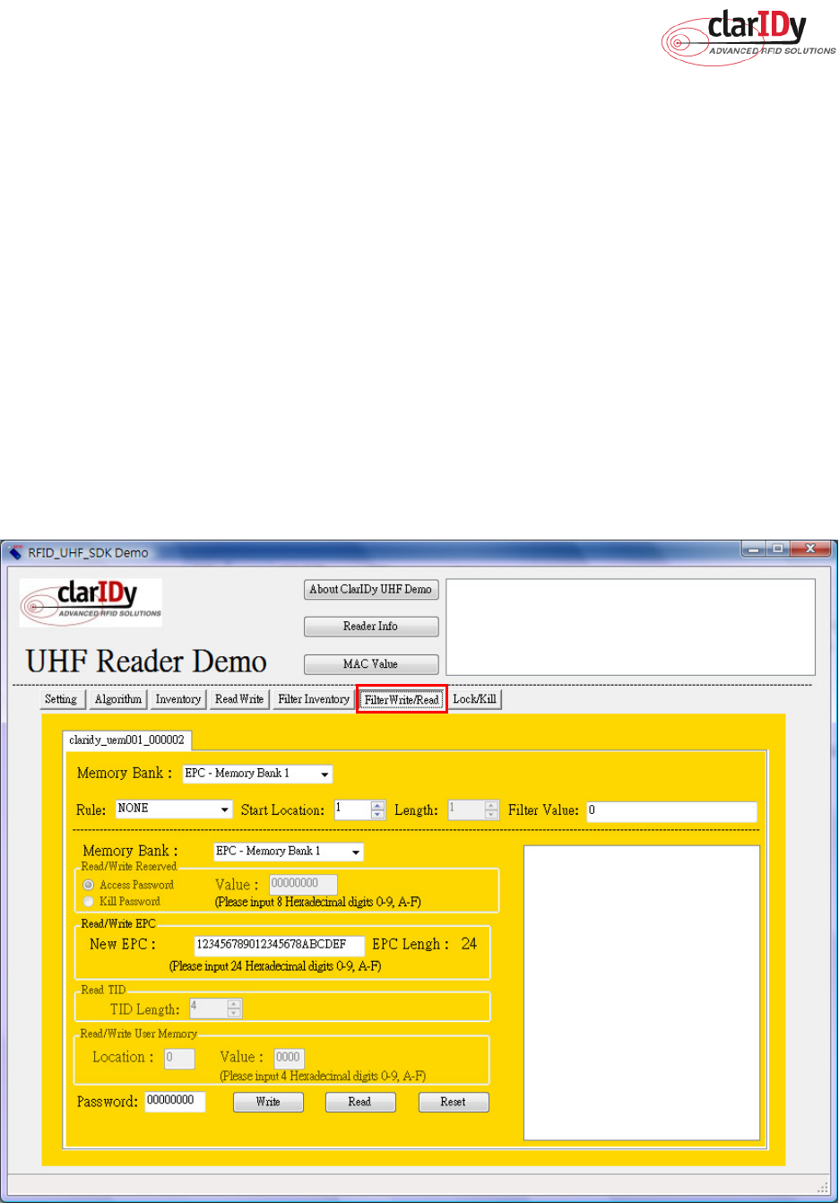 “Read/Write”, “Filter Inventory”, “Filter Read/Write” and “Lock/Kill” functions. Users can use