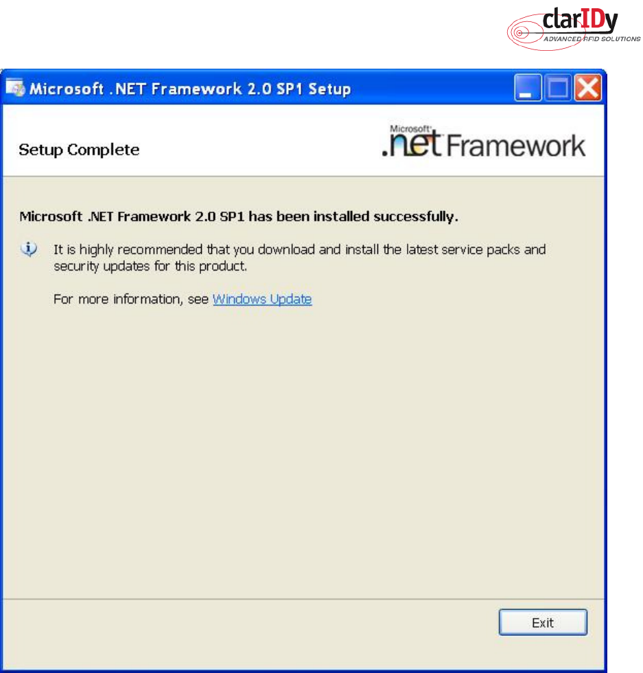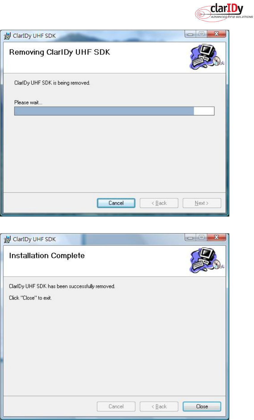 4. The “ClarIDy UHF Demo” is completed removed and click “Close” to close window, as