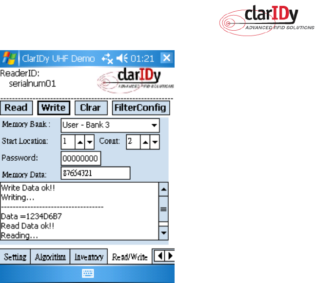 ClarIDy UHF USB Reader Demo Program for WinCE