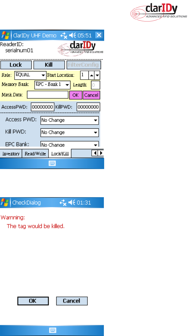 Read/Write” and “Lock/Kill” functions. Users can use these applications to control the ClarIDy