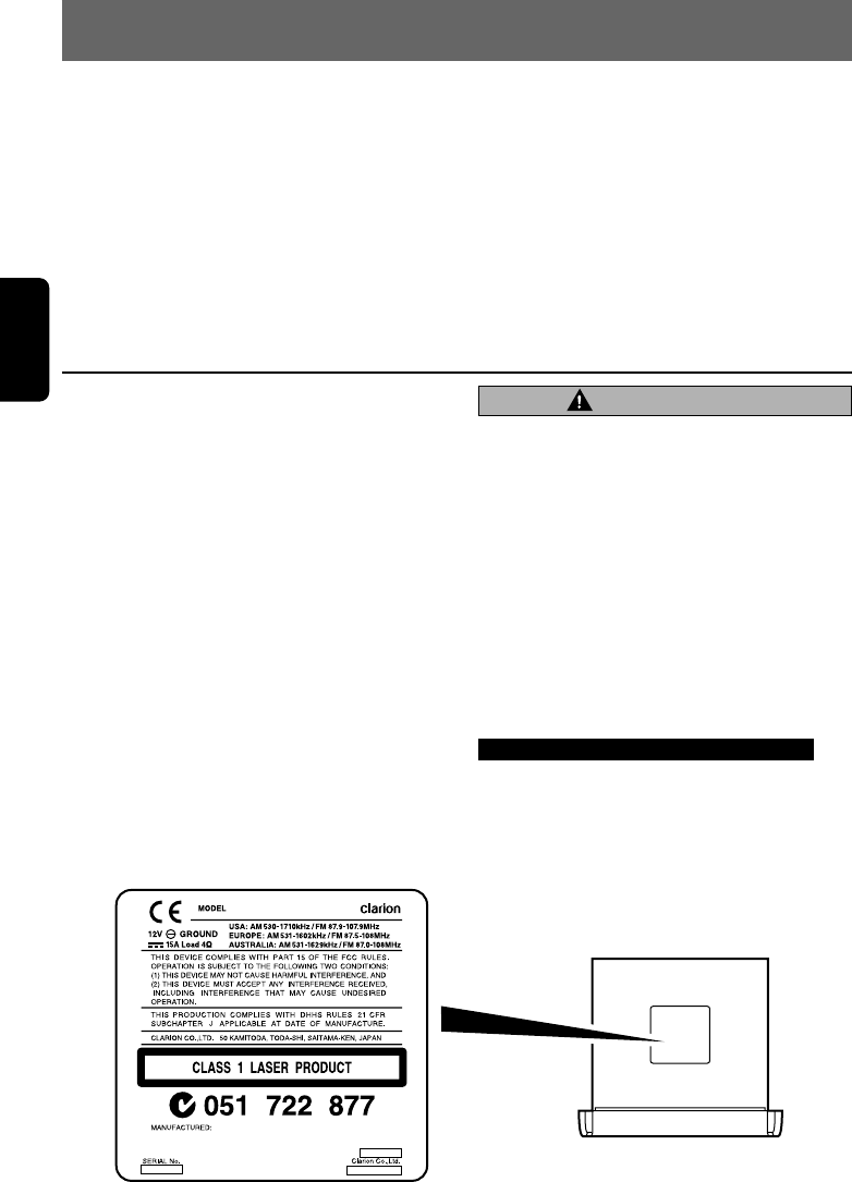 Thank you for purchasing this Clarion product.