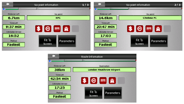 - Route Information screen