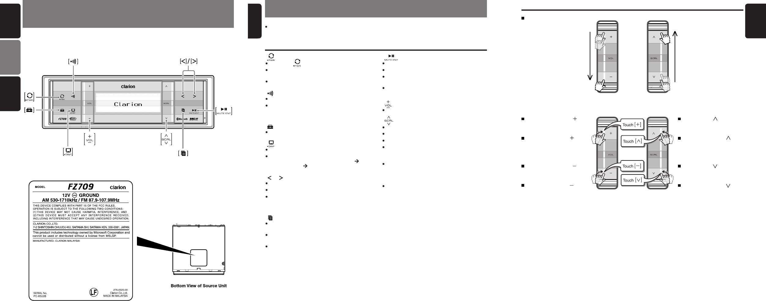 Clarion FZ709 Car Stereo with FM/USB/MP3/Bluetooth/Hands Free combination (2.4GHz Transceiver) User Manual 09US INV2 cv indd