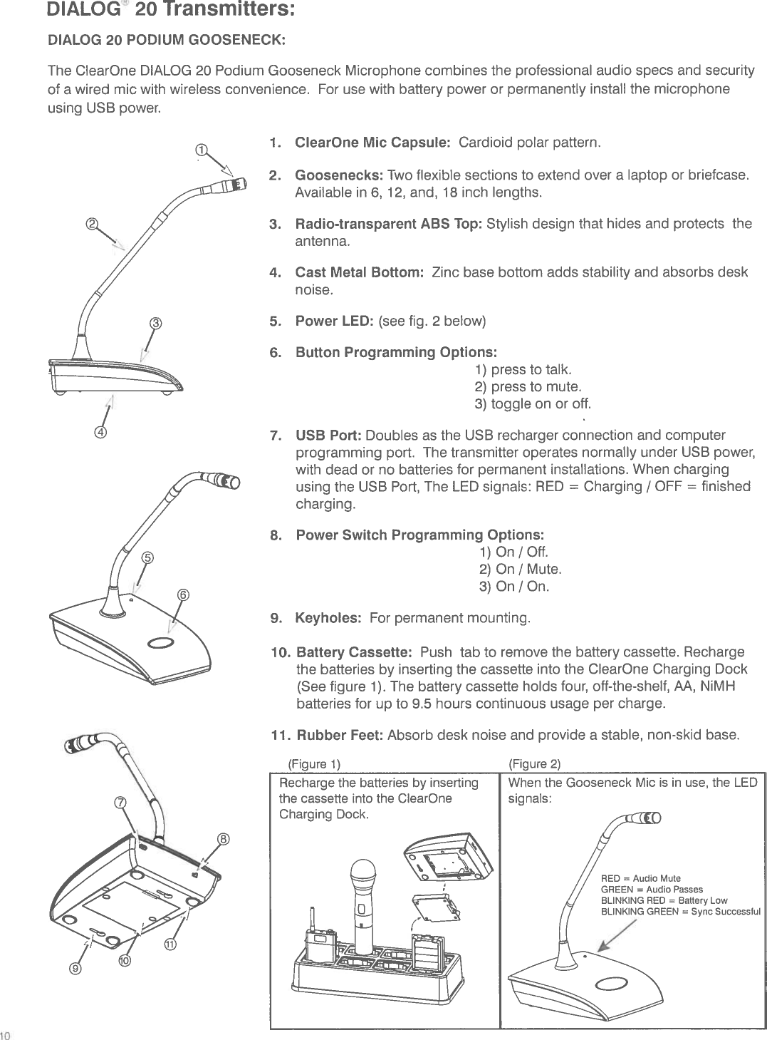 ClearOne DIALOG20BDM Dialog 20 Wireless Tabletop User Manual