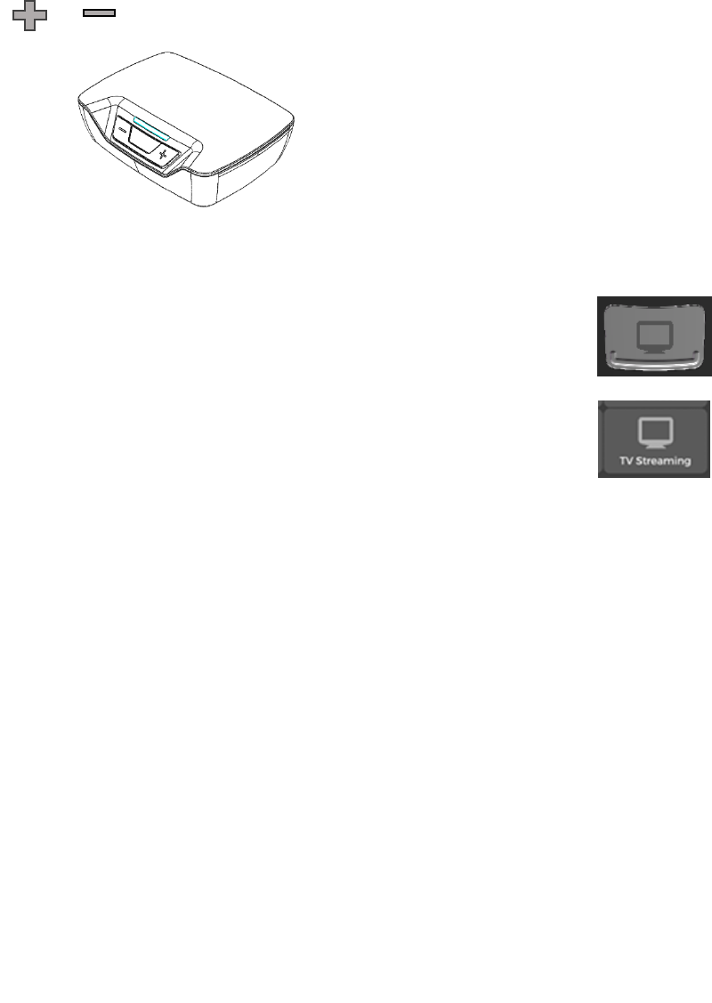 Press the or button on the front of your TV Streamer to adjust the TV steamer volume level in your