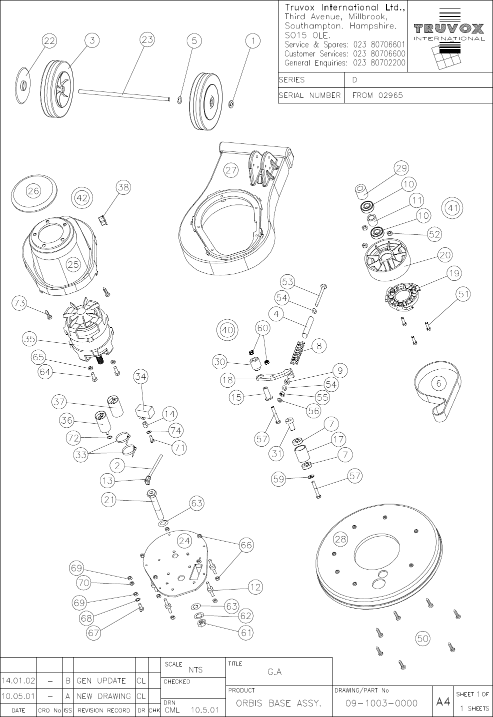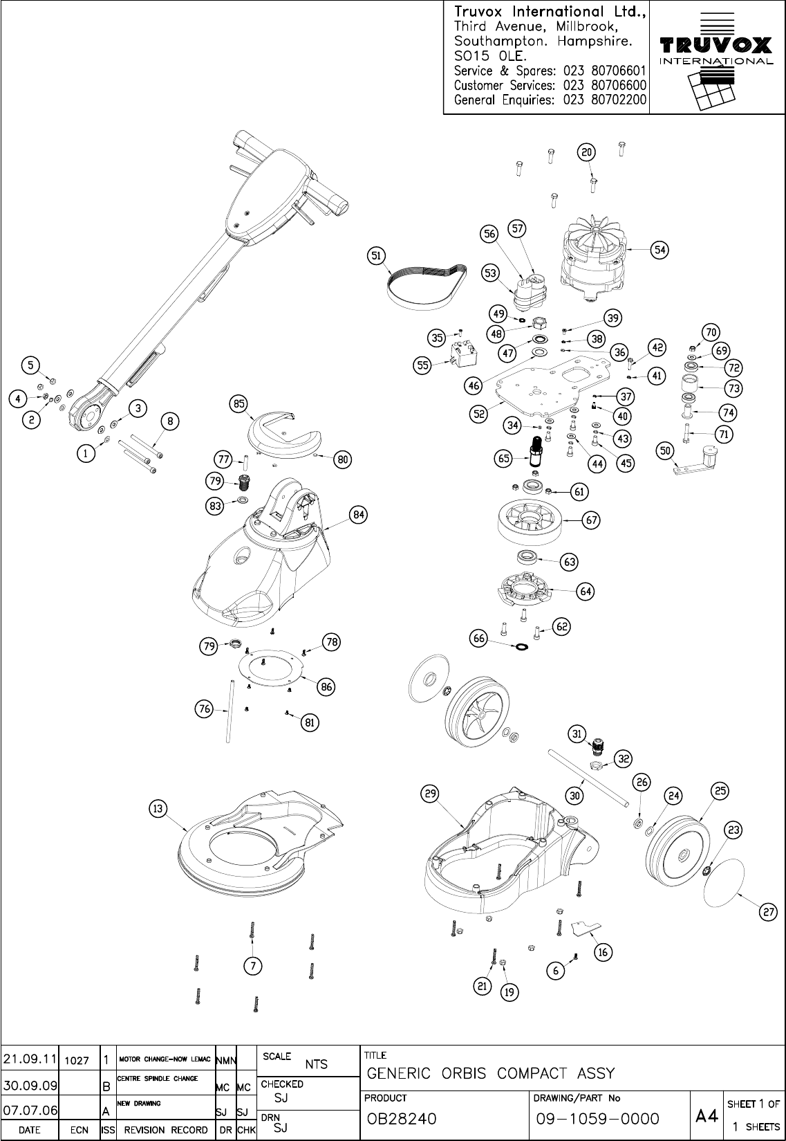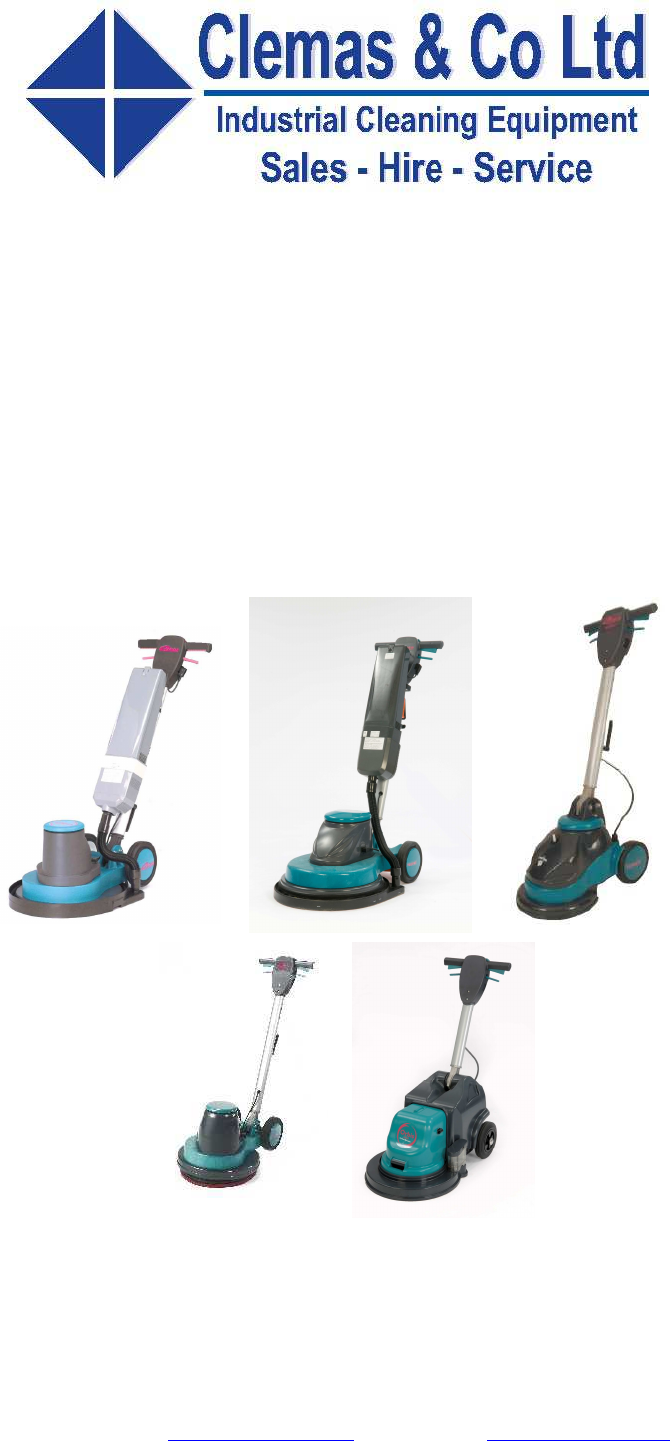 Clemas 230v 50hz ORBIS 200 & 400 15 Inch Truvox Range Parts Manual
