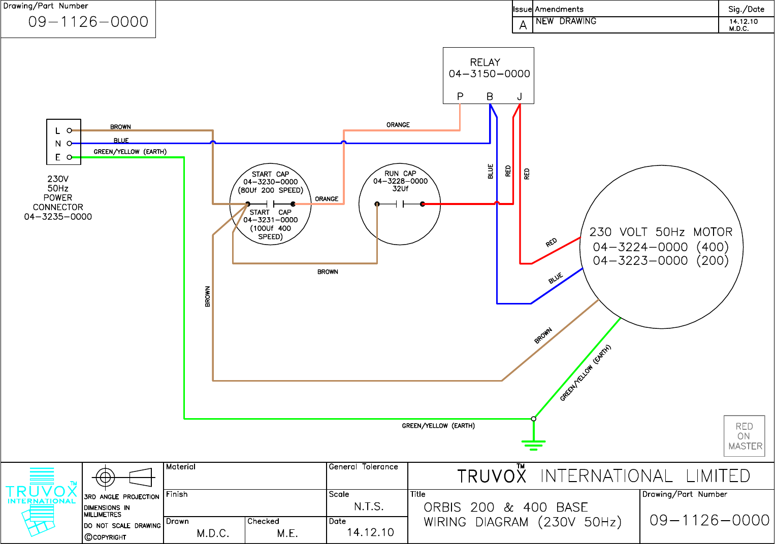 A N/A NEW DRAWING MDC 12 FEB 09 DRN CKD ORBIS CLASS 1 230V