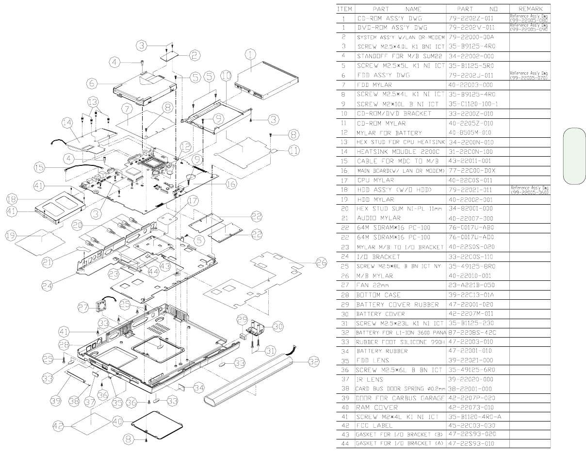 - DVD-ROM assembly and parts list