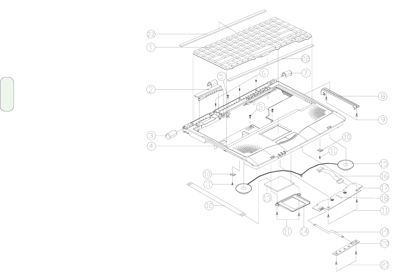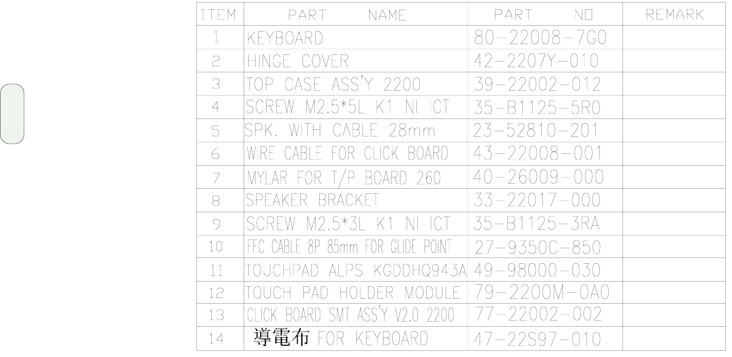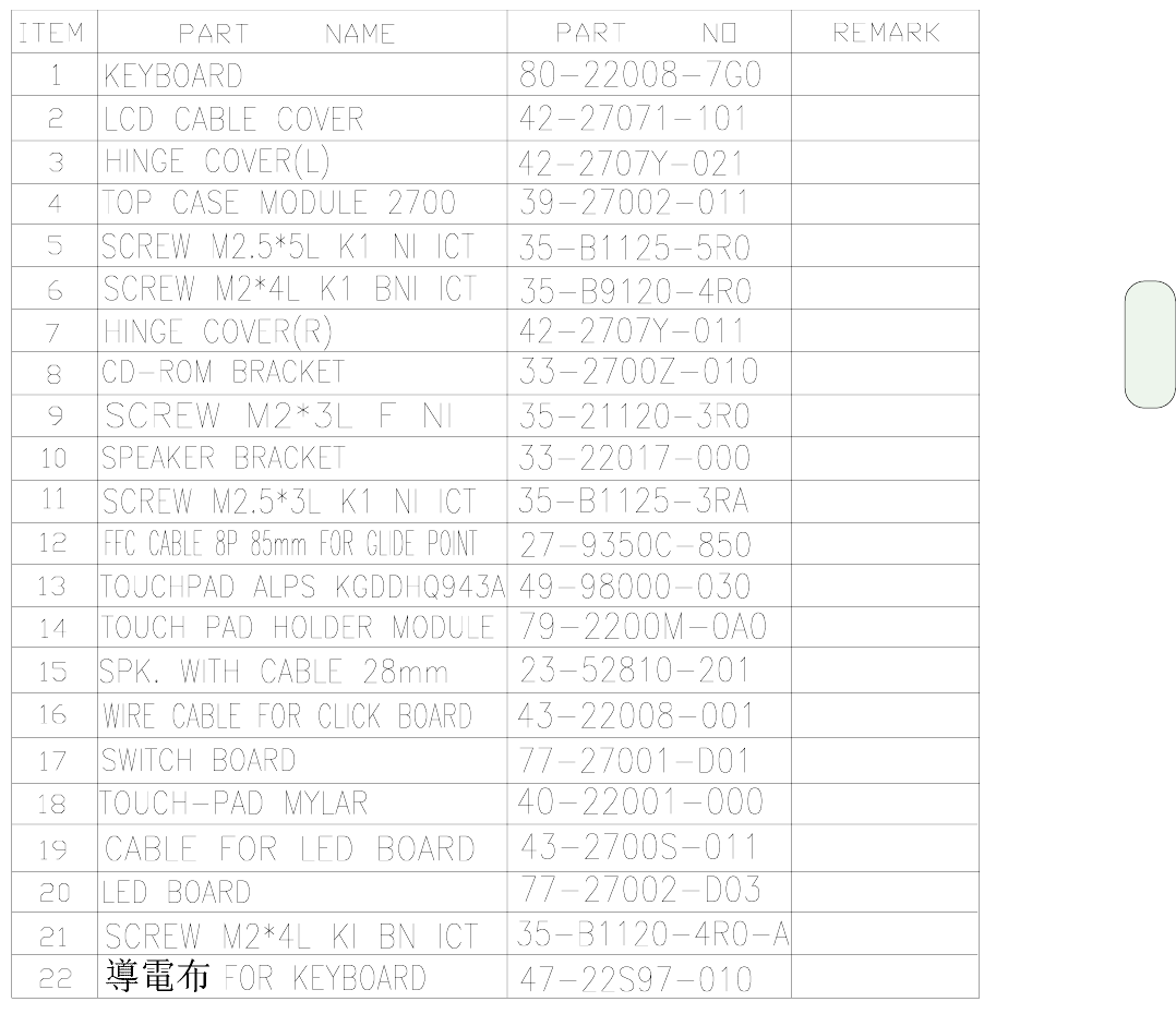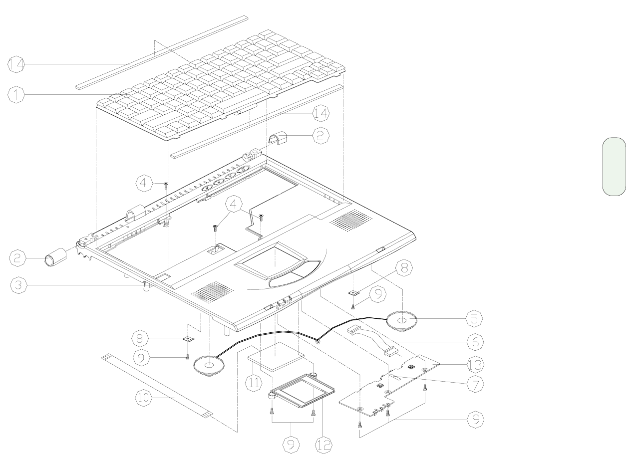 - Keyboard and Touchpad assembly parts list