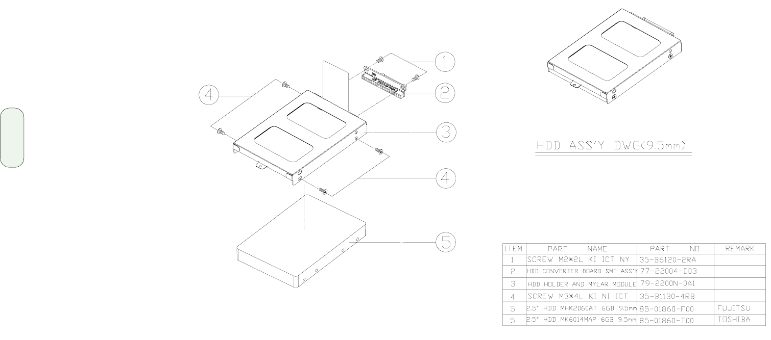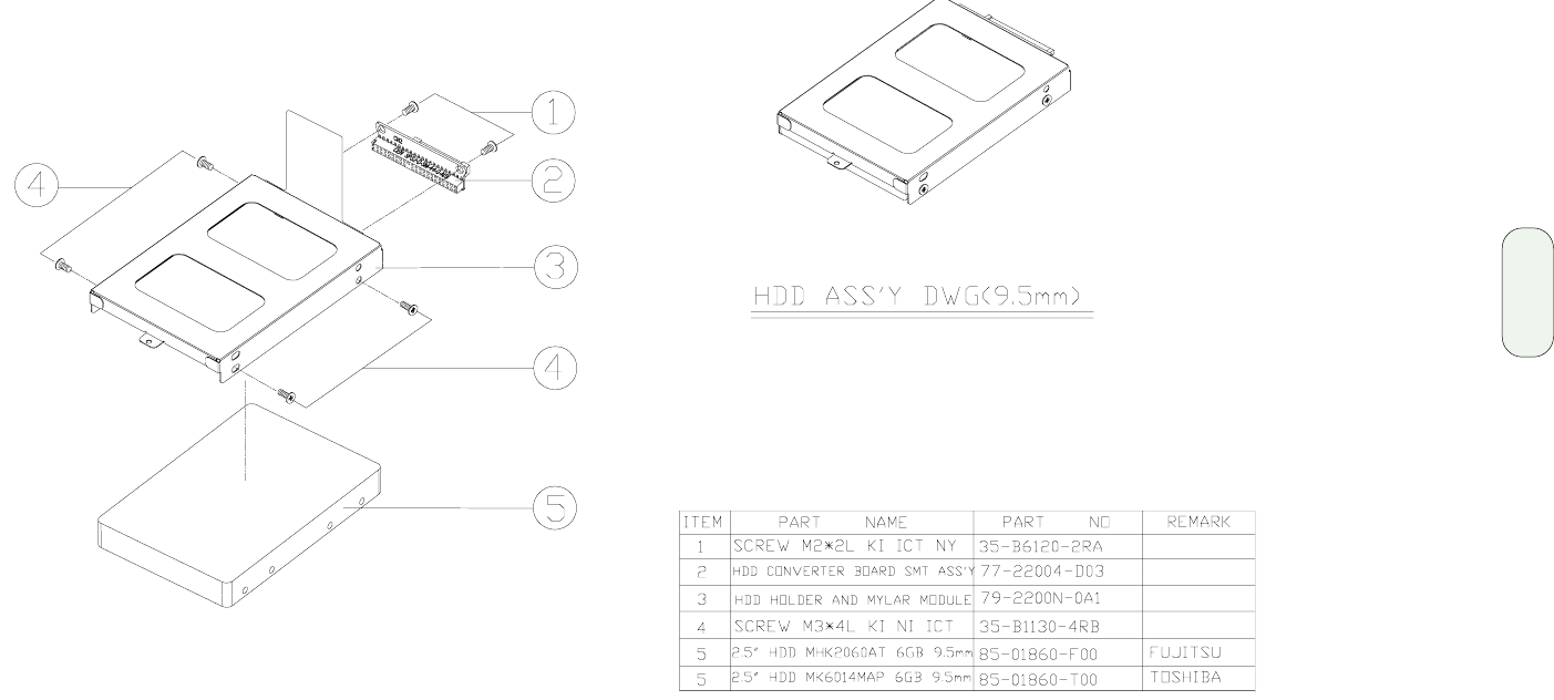 - HDD assembly and parts list