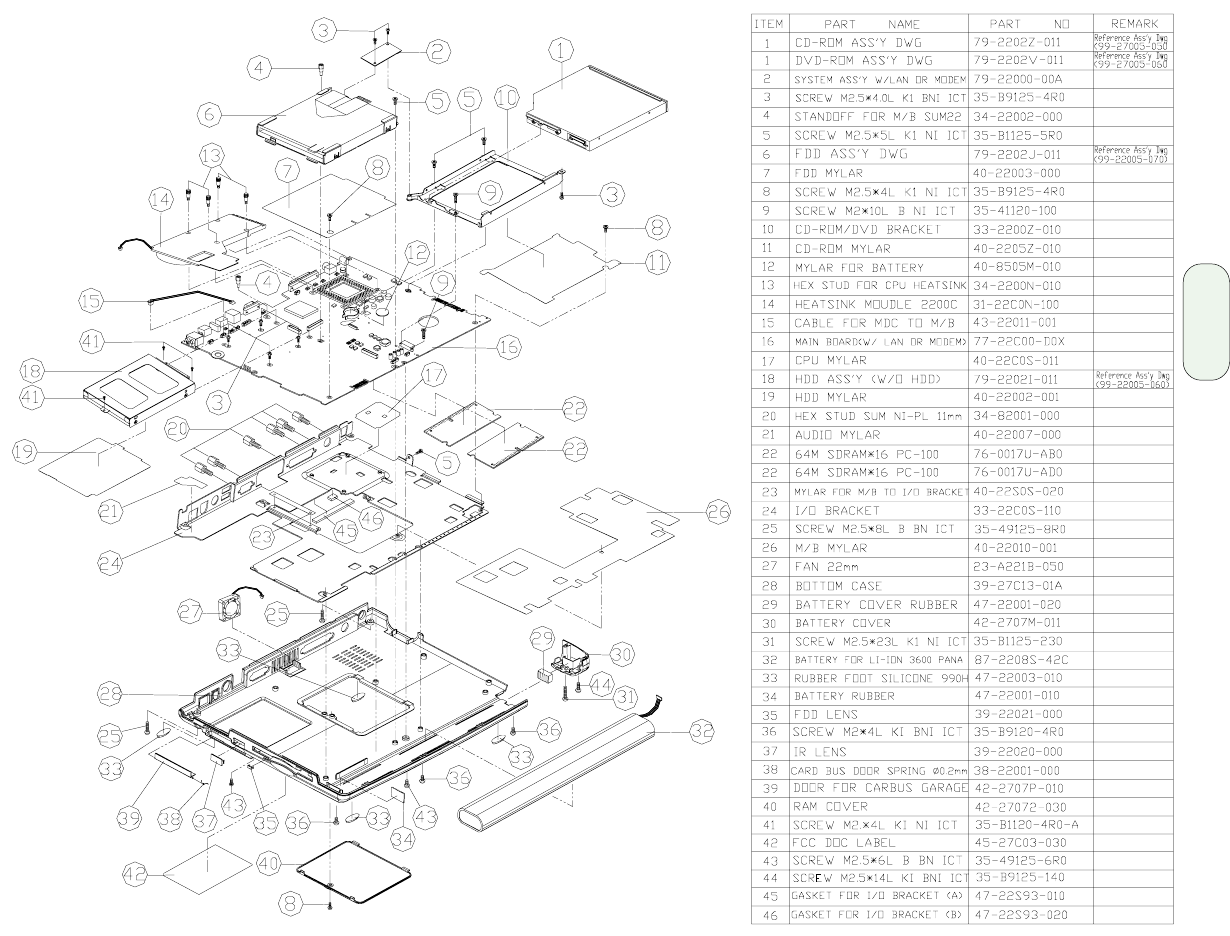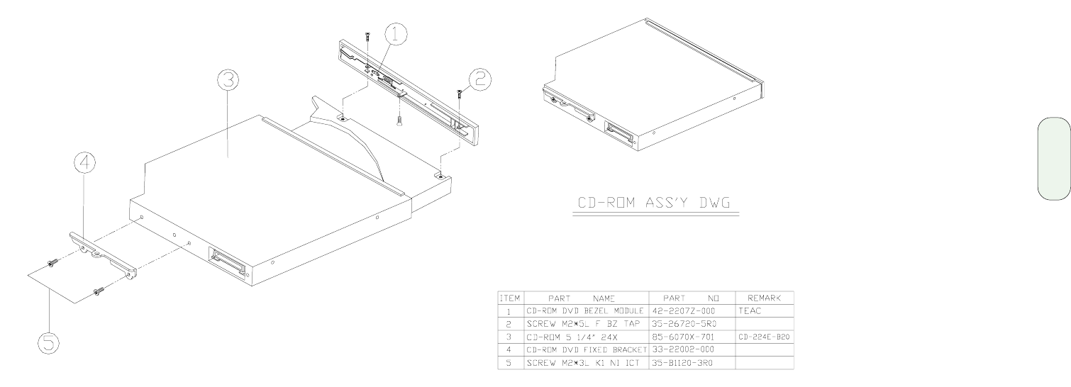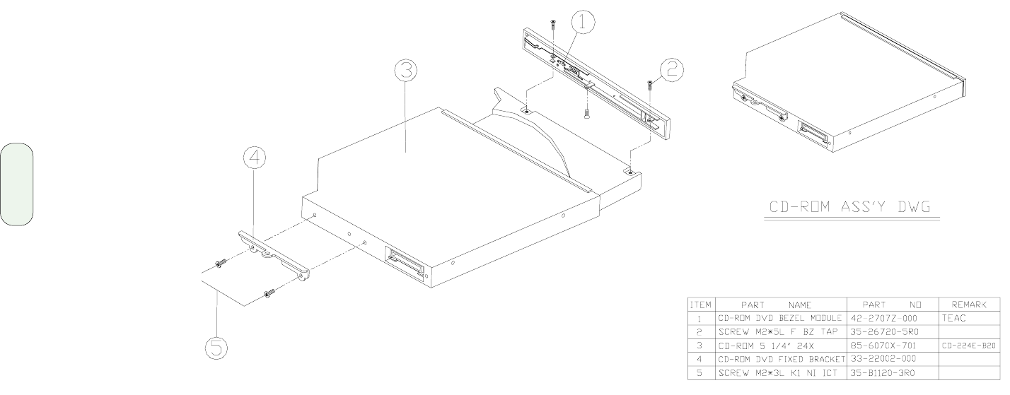 - CD-ROM Assembly and parts list