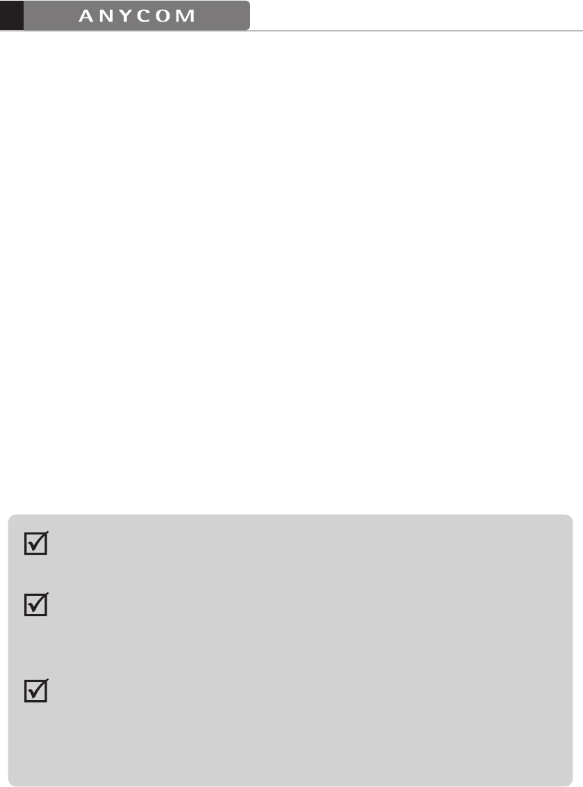 CHANTABILITY. ANYCOM is not responsible for incidental or conse-
