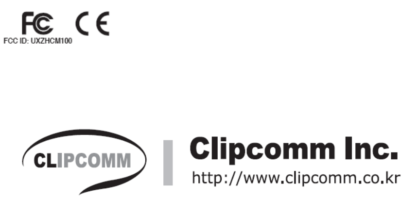 Hereby, Clipcomm, Inc. declares that this Bluetooth(M/N: HCM-100) is in compliance with the