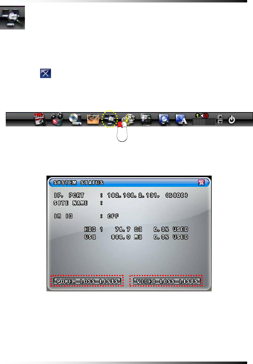 Check SYSTEM STATUS by pressing STATUS button of DVR