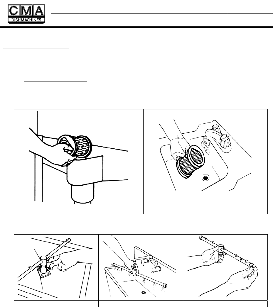 are properly racked. These parts shall be thoroughly cleaned at least once each day. The pumps and the wash and