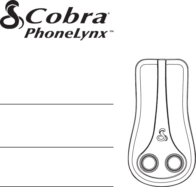 Cobra Electronics 0102A Bluetooth Cellular Gateway User Manual Cobra PhoneLynx indd