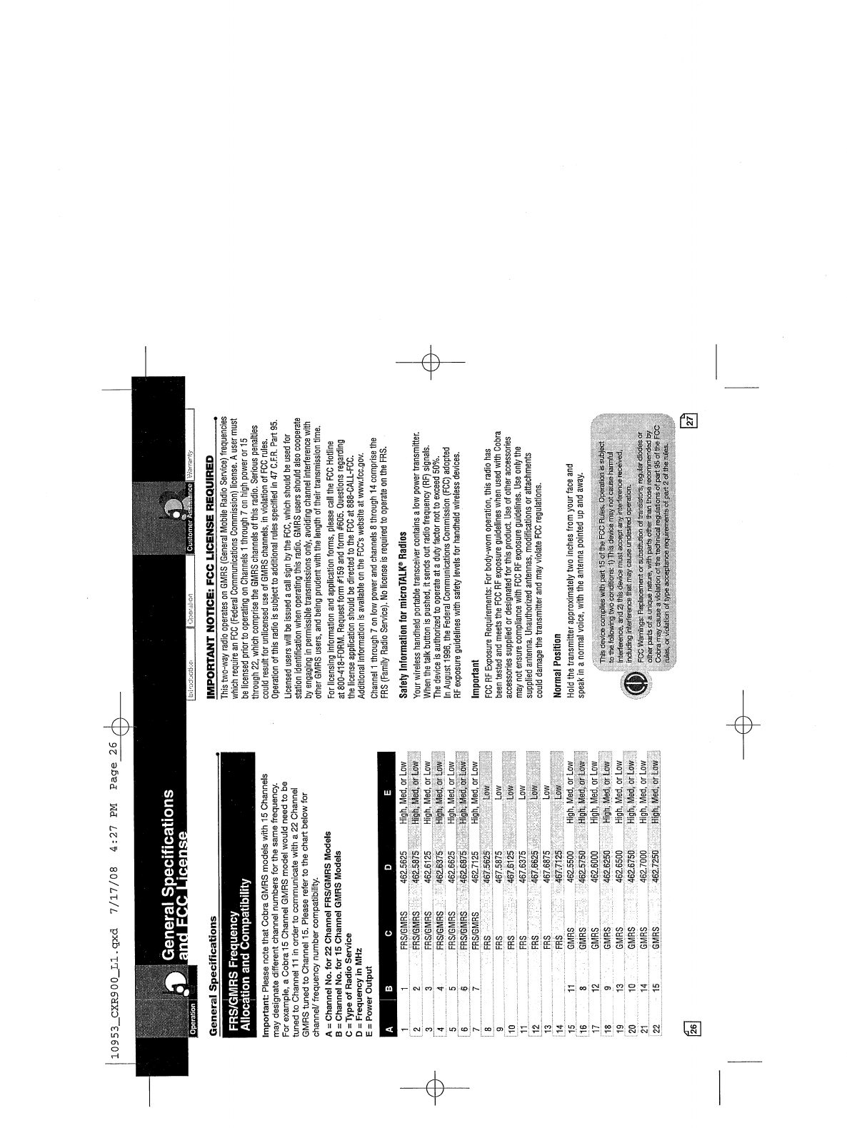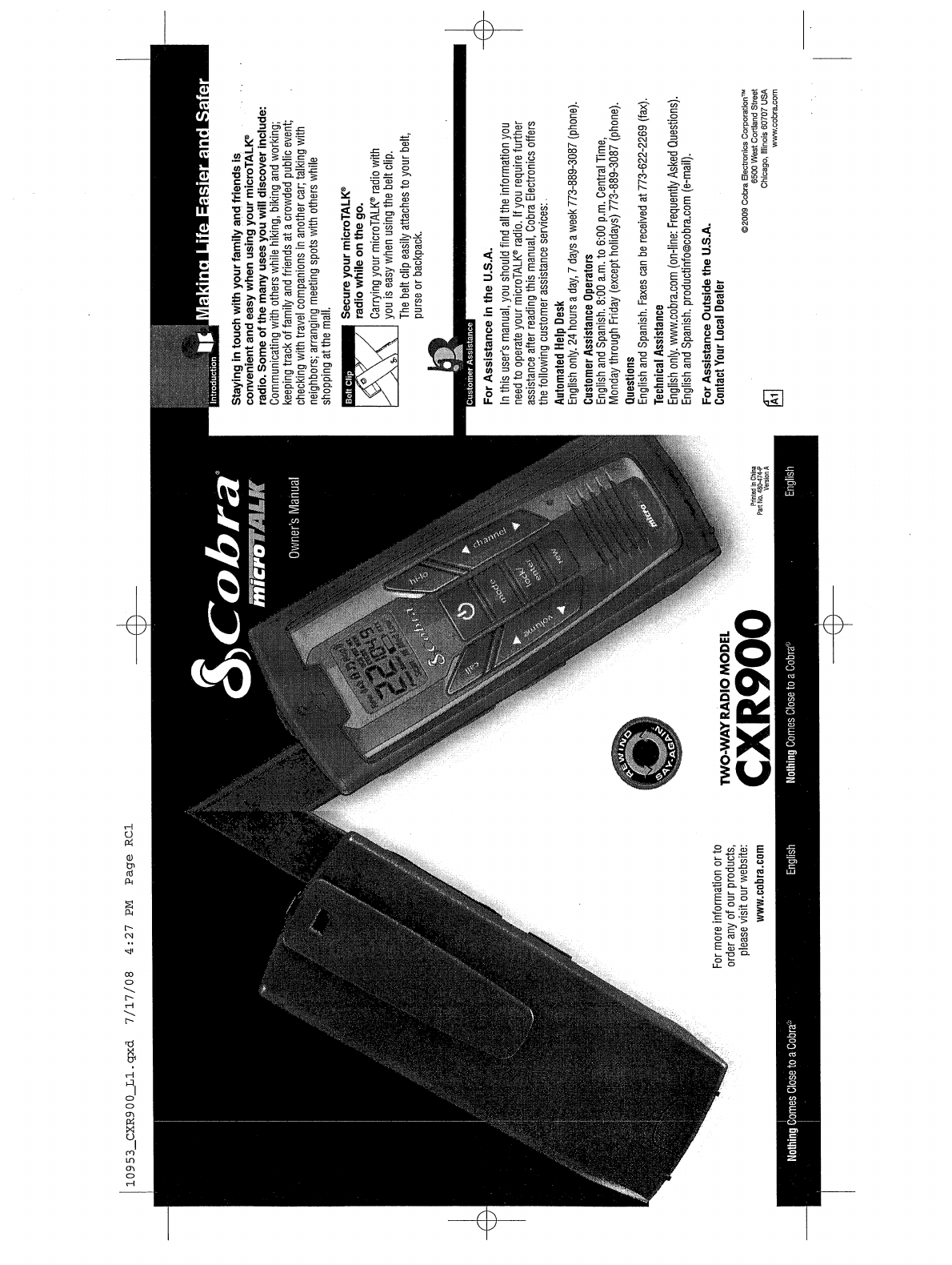 Cobra Electronics CXR900 FRS/GMRS TRANSCEIVER User Manual