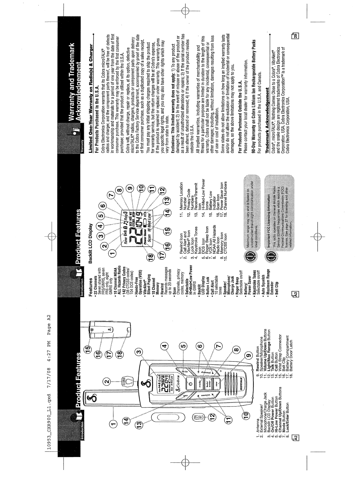 Cobra Electronics Corporation FRS/GMRS TRANSCEIVER Users Manual