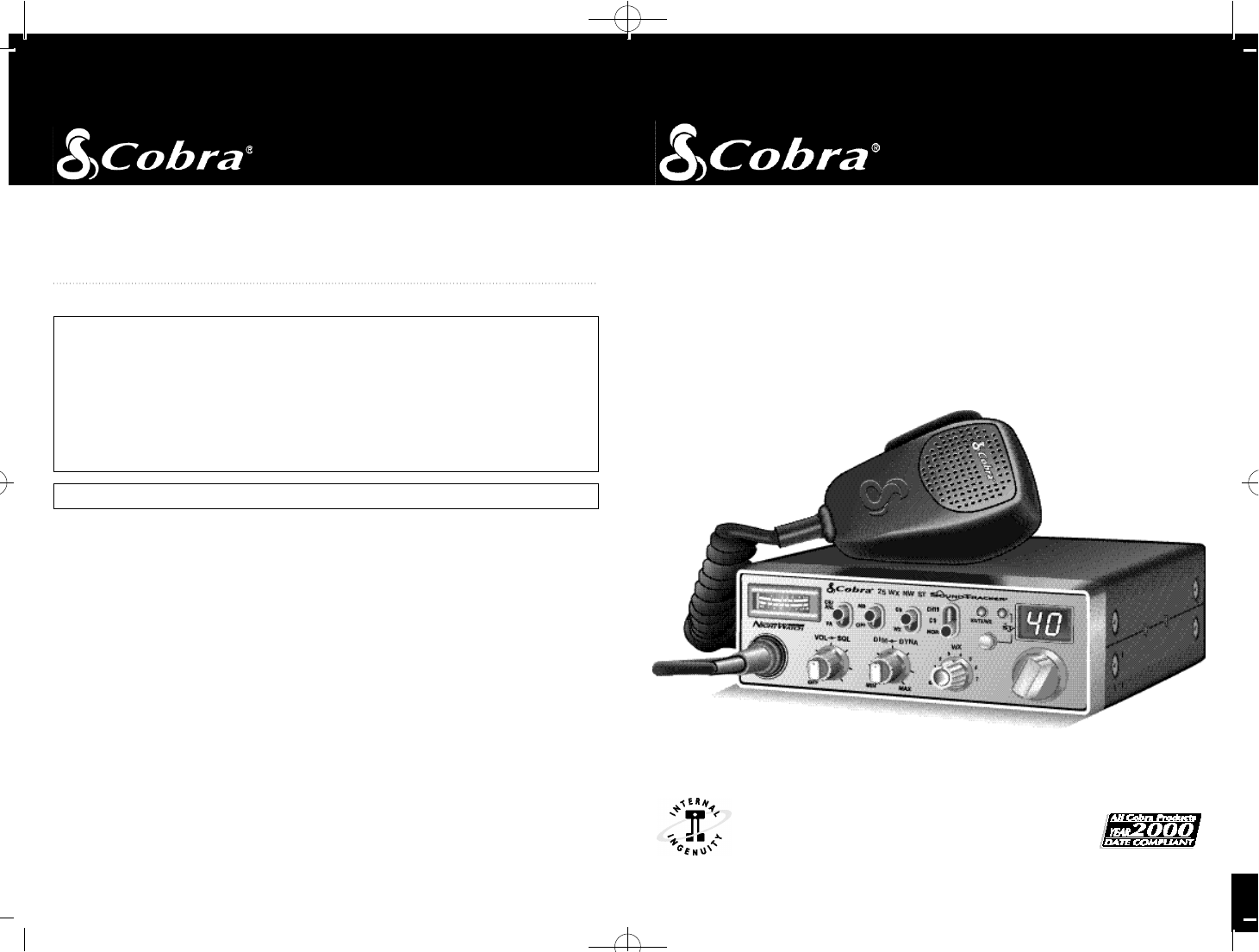 Thank you for purchasing the Cobra 25 WX NW ST