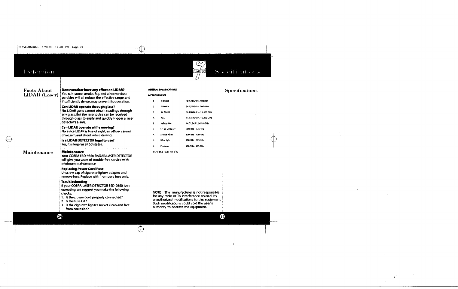 Cobra Electronics ESD9851 RADAR DETECTOR User Manual USERS MANUAL