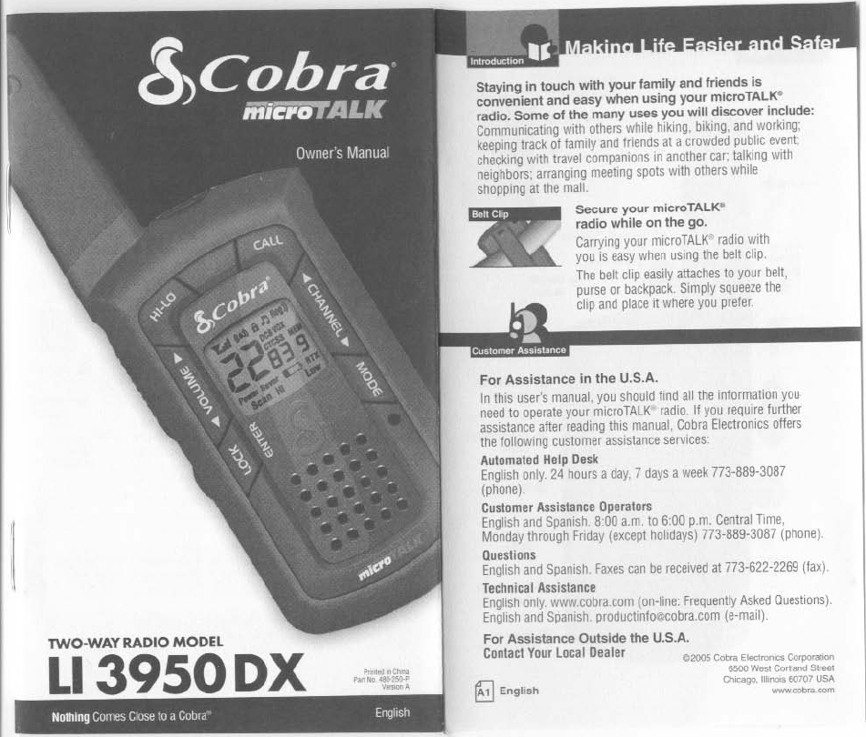 Cobra Electronics LI3900 GMRS/FRS TRANSCEIVER User Manual users manual