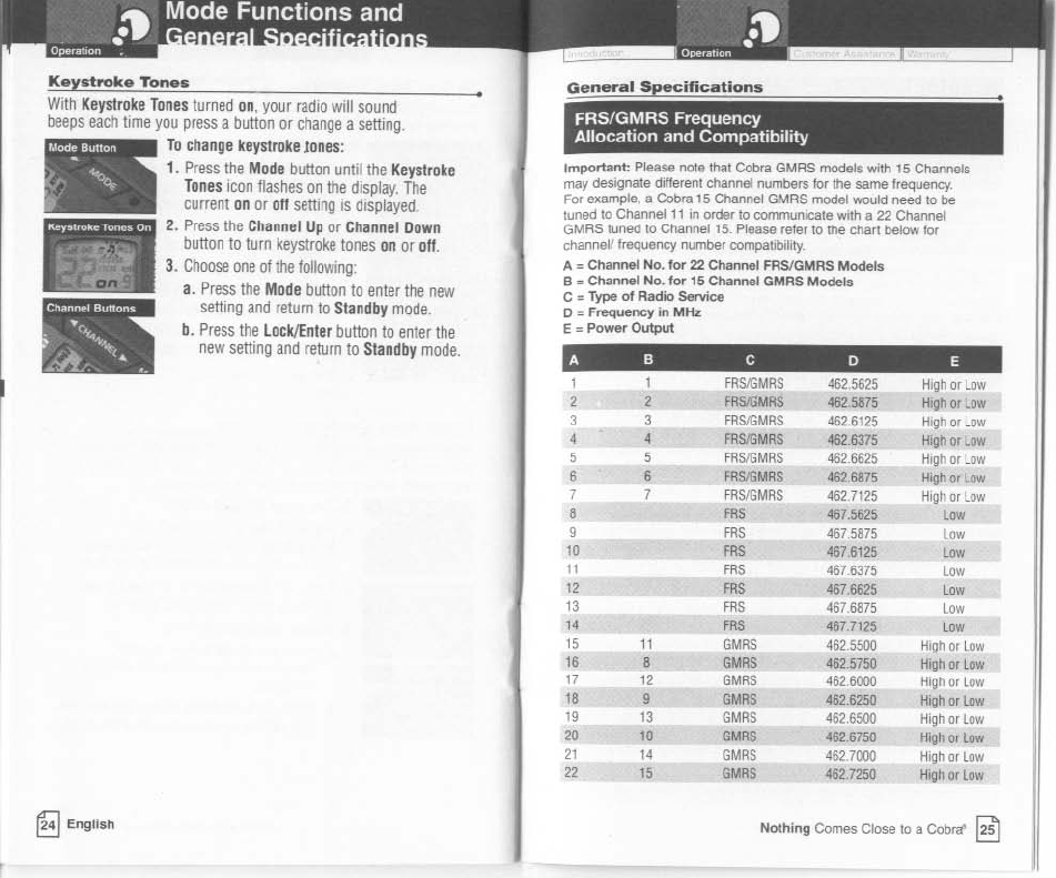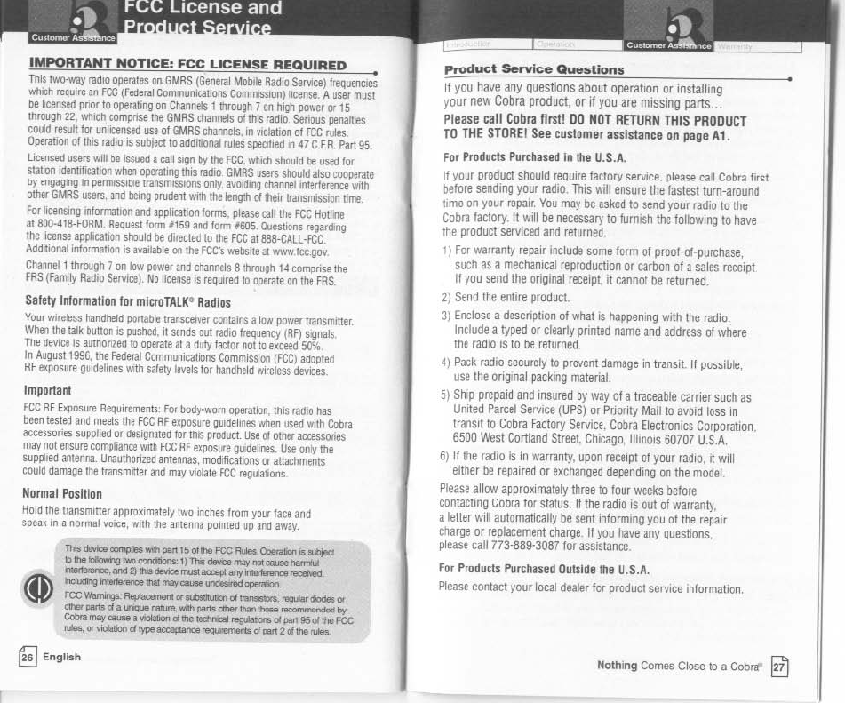 Cobra Electronics Corporation GMRS/FRS TRANSCEIVER users manual