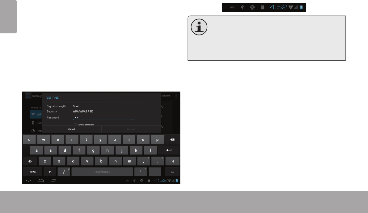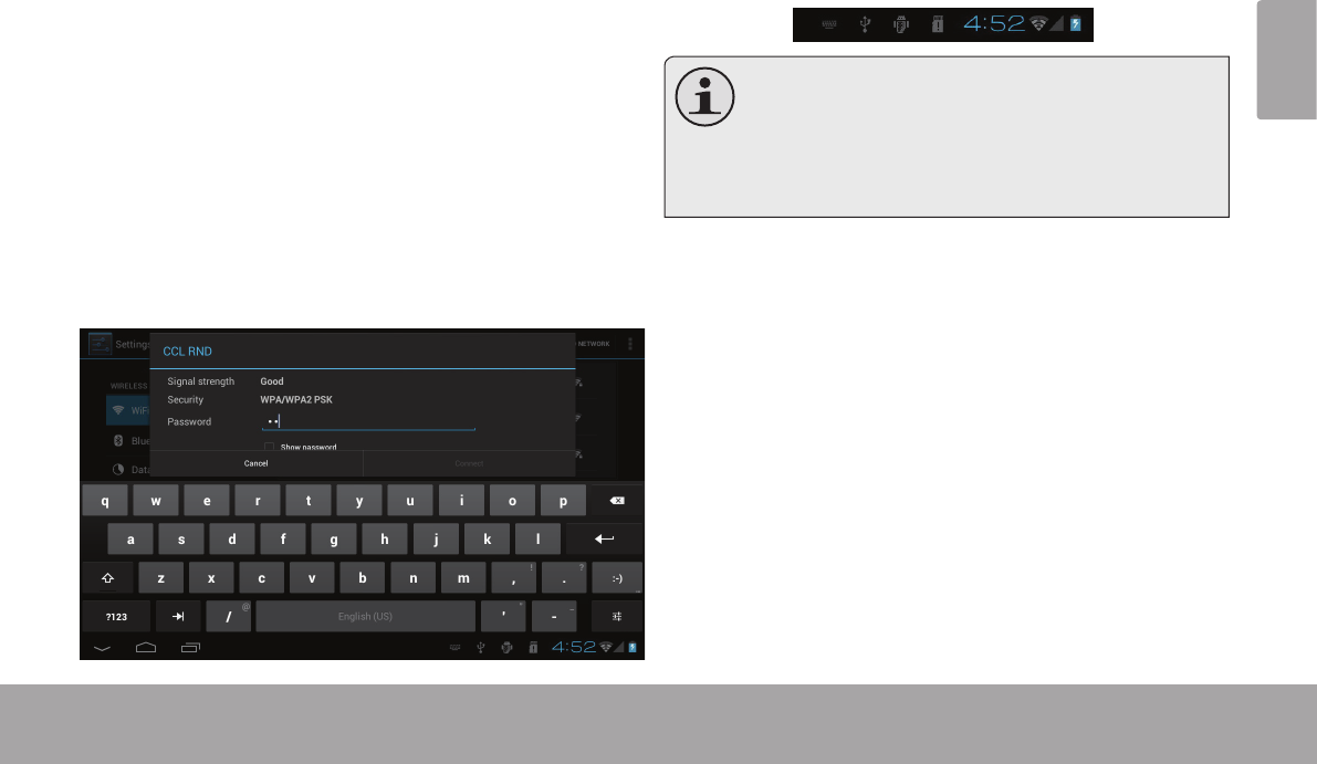 Esta tableta puede utilizar redes de datos Wi-Fi para conectarse a Internet.