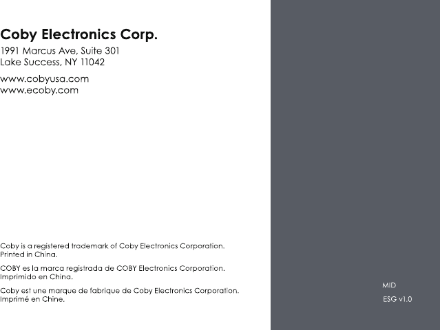 Coby Communications MID7036-7034 Mobile Internet Device User Manual MID7033 7035 ESG v1 0